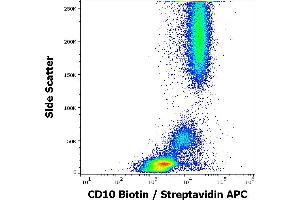 Membrane metalloendopeptidase,CD10 (neutral endopeptidase –, NEP, common acute lymphocytic leukemia antigen –, CALLA, membrane metallo-endopeptidase –, MME, enkefalinase) is a 100- kDa cell surface zinc metalloprotease, cleaving peptide bonds on the N-terminus of hydrophobic amino acids and inactivating multiple physiologically active peptids. CD10 is expressed on various normal cell types, including lymphoid precursor cells, germinal center B lymhocytes, and some epithelial cells, and its expression level serves as a marker for diagnostics of many carcinomas. CD10 is also a differentiation antigen for early B-lymphoid progenitors in the B-cell differentiation pathway and has a key role in regulation of growth, differentiation and signal transduction of many cellular systems.,CALLA, Neprilysin, Neutral endopeptidase, Enkephalinase, Atriopeptidase, MME