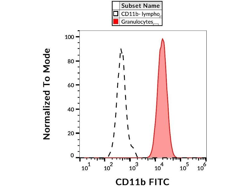 Der Maus Monoklonal Anti-CD11b Antikörper wurde für FACS validiert. Er ist geeignet, CD11b in Proben von Human zu detektieren. Es sind 2+ Publikationen verfügbar.