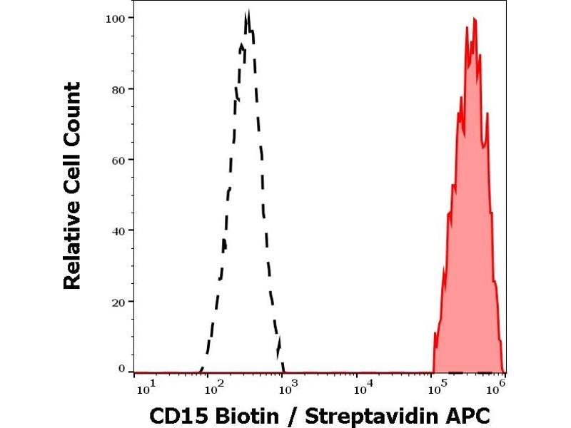 The antibody MEM-158 reacts with CD15, a cell membrane molecule 3-fucosyl-N-acetyllactosamine (3-FAL) strongly expressed on the surface of granulocytes, monocytes, macrophages, mast cells, it is also present on Langerhans cells and some myeloid precursors cells.