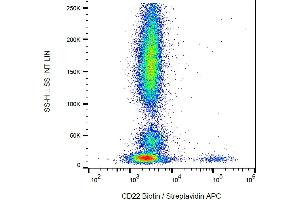 The antibody MEM-01 reacts with an extracellular epitope of CD22 (BL-CAM), a 130 kDa type I transmembrane glycoprotein (immunoglobulin superfamily) expressed in the cytoplasm of pro-B and pre-B lymphocytes, and on the surface of mature and activated B lymphocytes, it is lost on plasma cells, peripheral blood T lymphocytes, granulocytes and monocytes. The antibody MEM-01 cross-blocks the antibody OTH228 that recognizes uniquely epitope "E", it does not cross-block antibodies RFB-4, CLB22/1 and CLB-BLy1.
