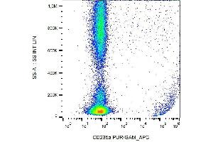 The mouse monoclonal antibody HIR2 recognizes an epitope within the N-terminal (extracellular) portion of CD235a (glycophorin A) and CD235b (glycophorin B). Its antigen is expressed on early erythroblasts, late erythroblasts, erythroblasts, mature erythrocytes and the cells of erythroid cell lines K562 and HEL, but not on all other cells.