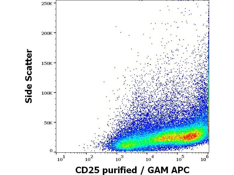 Interleukin 2 receptor subunit alpha,CD25 (IL2Ralpha, Tac) is a ligand-binding alpha subunit of interleukin 2 receptor (IL2R). Together with beta and gamma subunit CD25 constitues the high affinity IL2R, whereas CD25 alone serves as the low affinity IL2R. CD25 expression rapidly increases upon T cell activation. The 55 kDa CD25 Molecule is enzymatically cleaved and shed from the cell surface as a soluble 45 kDa s-Tac, whose concentration in serum can be used as a marker of T cell activation. Expression of CD25 indicates the neoplastic phenotype of mast cells. Humanized anti CD25 antibodies represent a useful tool to reduce the incidence of allograft rejection as well as the severity of graft versus host reaction, and radioimmunoconjugates of anti-CD25 antibodies can be used against CD25 expressing lymphomas.,IL-2R α, chain, IL-2-RA, IL2-RA, p55, TAC antigen, IDDM10, TCGFR
