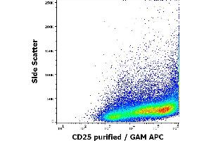 Interleukin 2 receptor subunit alpha,CD25 (IL2Ralpha, Tac) is a ligand-binding alpha subunit of interleukin 2 receptor (IL2R). Together with beta and gamma subunit CD25 constitues the high affinity IL2R, whereas CD25 alone serves as the low affinity IL2R. CD25 expression rapidly increases upon T cell activation. The 55 kDa CD25 Molecule is enzymatically cleaved and shed from the cell surface as a soluble 45 kDa s-Tac, whose concentration in serum can be used as a marker of T cell activation. Expression of CD25 indicates the neoplastic phenotype of mast cells. Humanized anti CD25 antibodies represent a useful tool to reduce the incidence of allograft rejection as well as the severity of graft versus host reaction, and radioimmunoconjugates of anti-CD25 antibodies can be used against CD25 expressing lymphomas.,IL-2R α, chain, IL-2-RA, IL2-RA, p55, TAC antigen, IDDM10, TCGFR
