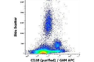 Der Maus Monoklonal anti-CD38 Antikörper (Klon HIT2) (ABIN94083) detektiert spezifisch CD38 in FACS, IHC (fro) und IHC (p).