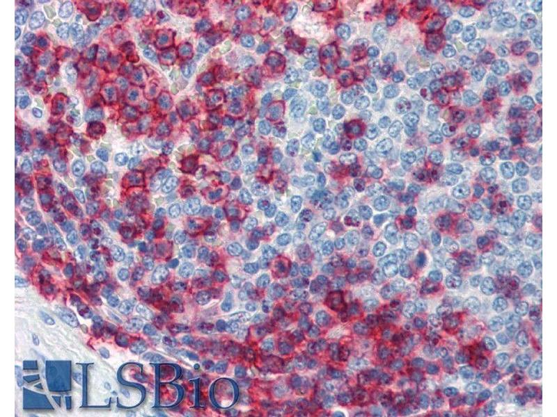 Sialophorin,CD43 (leukosialin, sialophorin) is a transmembrane mucin-like protein with high negative charge, expressed on the surface of most hematopoietic cells. CD43 contributes to a repulsive barrier that interferes with cellular adhesion, however, in certain cases also promotes leukocyte aggregation. By interaction with actin-binding proteins ezrin and moesin CD43 plays a regulatory role in remodeling T-cell morphology and regulates cell-cell interactions during lymphocyte traffic. CD43 signaling both enhances LFA-1 adhesiveness and counteracts LFA-1 induction via other receptors. Expression of CD43 causes induction of functionally active tumour suppressor p53 protein, but in case of p53 and ARF defficiency CD43 promotes tumour proliferation and viability. It appears to be an important modulator of leukocyte functions.,Leukosialin, Sialophorin, Galactoglycoprotein, GALGP, LSN, SPN, GALGP, GP5