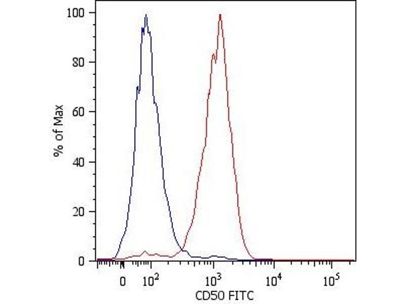 The antibody MEM-171 recognizes an extracellular epitope in the D2 domain of CD50 (ICAM-3), a 120-130 kDa type I membrane protein (immunoglobulin supergene family) expressed on leukocytes, endothelial cells and Langerhans cells, it is negative on platelets and erythrocytes.
