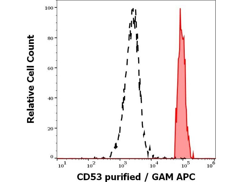 - The antibody MEM-53 reacts with an extracellular epitope of CD53, a 32-40 kDa tetraspanin family glycoprotein exclusivelly expressed on leukocytes, it is not present on platelets, red blood cells and non-hematopoietic cells. The antibody MEM-53 reacts also with deglycosylated molecule (molecular weight of the antigen is reduced by 15 kDa using endoglycosidase F).