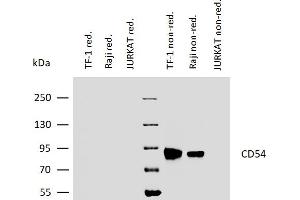 - Intercellular adhesion molecule 1,CD54 (ICAM-1) is a 90 kD member of the C2 subset of immunoglobulin superfamily. It is a transmembrane molecule with 7 potential N-glycosylated sites, expressed on resting monocytes and endothelial cells and can be upregulated on many other cells, e.g. with lymphokines, on B- and T-lymphocytes, thymocytes, dendritic cells and also on keratinocytes, chondrocytes, as well as epithelial cells. CD54 mediates cell adhesion by binding to integrins CD11a/CD18 (LFA-1) and to CD11b/CD18 (Mac-1). The interaction of CD54 with LFA-1 enhances antigen-specific T-cell activation.,ICAM-1, BB2, P3.58