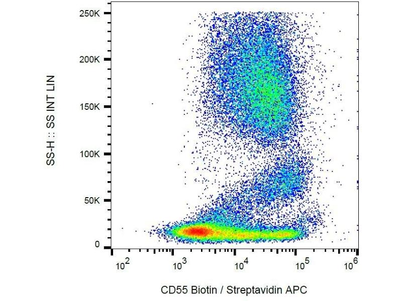 The antibody MEM-118 recognizes an epitope in SCR4 domain of CD55 (Decay accelerating factor, DAF), a 60-70 kDa glycosylphosphatidylinositol (GPI)-anchored single chain extracellular glycoprotein. CD55 is widely expressed on hematopoietic and on many non-hematopoietic cells, it is weakly present on NK cells.