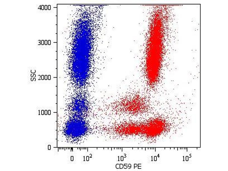 The antibody MEM-43 reacts with well defined epitope (W40, R-53) on CD59 (Protectin), an 18-20 kDa glycosylphosphatidylinositol (GPI)-anchored glycoprotein expressed on the surface of all hematopoietic cells, it is widely present on cells in all tissues. This antibody does not compete with MEM-43/5, and has blocking activity.