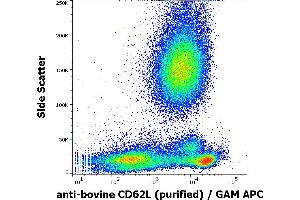 The antibody IVA94 reacts with an extracellular epitope of CD62L antigen (bovine). CD62L (L-selectin) is a 74-95 kDa single chain type I glycoprotein expressed on most peripheral blood B lymphocytes, T lymphocytes, monocytes and granulocytes, it is also present on a subset of NK cells and certain hematopoietic malignant cells.