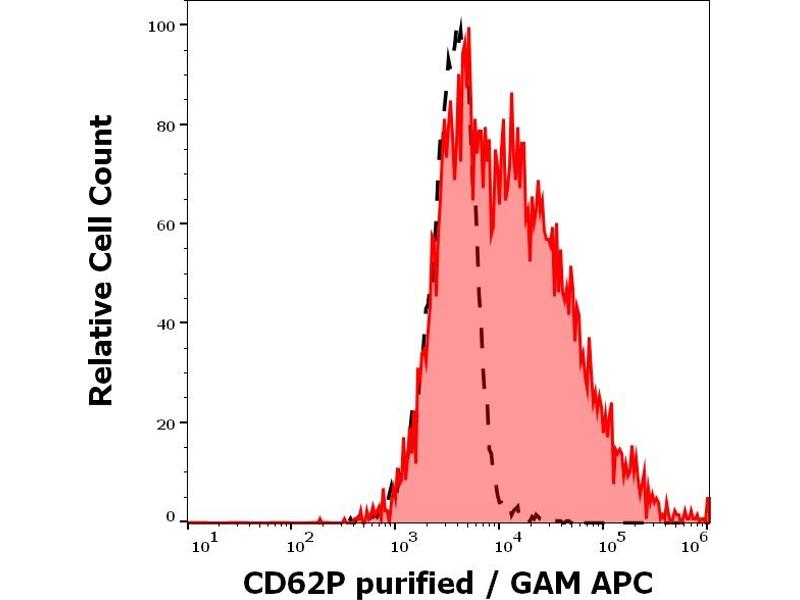 The mouse monoclonal antibody HI62P recognizes an extracellular epitope of CD62P (P-selectin), a 140 kD single chain type I transmembrane glycoprotein present in secretory alpha-granules in platelets, in Weibel-Palade bodies in endothelial cells and in megakaryocytes, it is relocated to the plasma membrane upon activation.