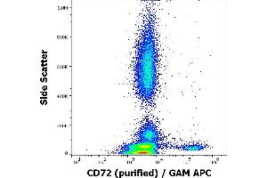 The mouse monoclonal antibody 3F3 recognizes an extracellular epitope of CD72, a 39-43 kDa type II membrane glycoprotein (C-type lectin family). CD72 is a pan-B cell marker expressed throughout the B lymphocytes diferentiation with the exception of plasma cells, it is also present on follicular dendritic cells.