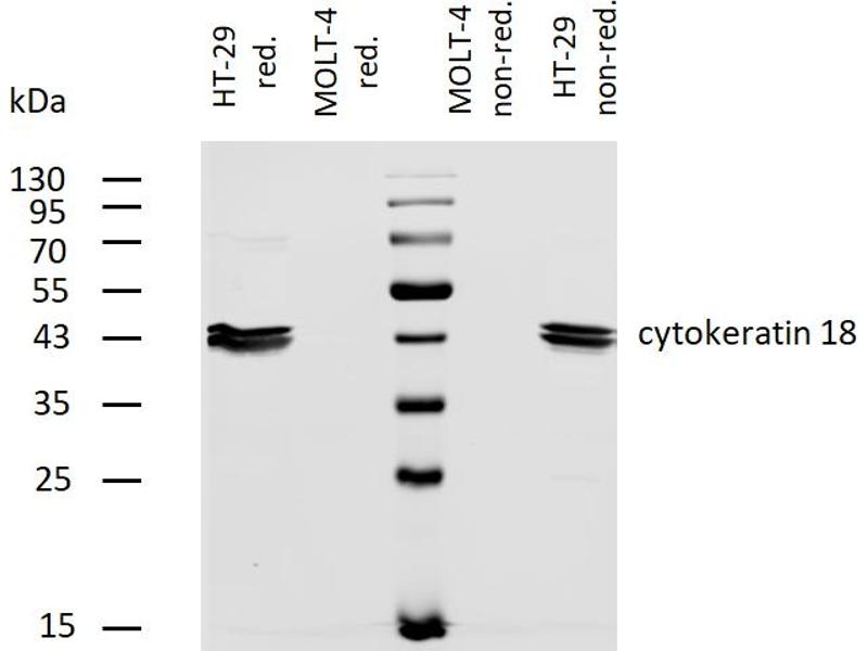: "Monoclonal antibodies recognizing different epitopes of cytokeratin No.18." in: Folia biologica, Vol. 35, Issue 6, pp. 373-82, (1990) (PubMed).