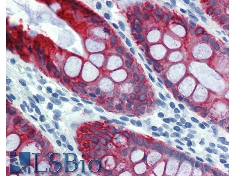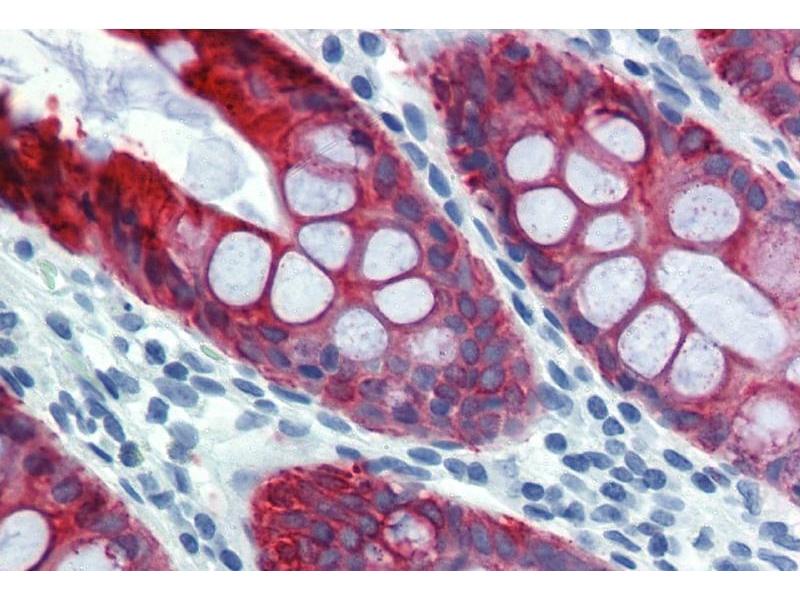 Immunohistochemistry (paraffin sections): Recommended dilution: 10 μg/mL, positive tissue: colon, skin.
