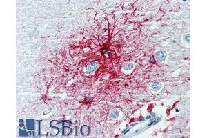 Immunohistochemistry (paraffin sections): Recommended dilution: 10 μg/mL, positive tissue: human brain (cortex, cerebellum). The antibody GF-01 strongly stains astrocytes in human brain tissue sections but it is essentially negative on mouse and rat tissues. Immunocytochemistry: Recommended dilution: 5-10 μg/mL.