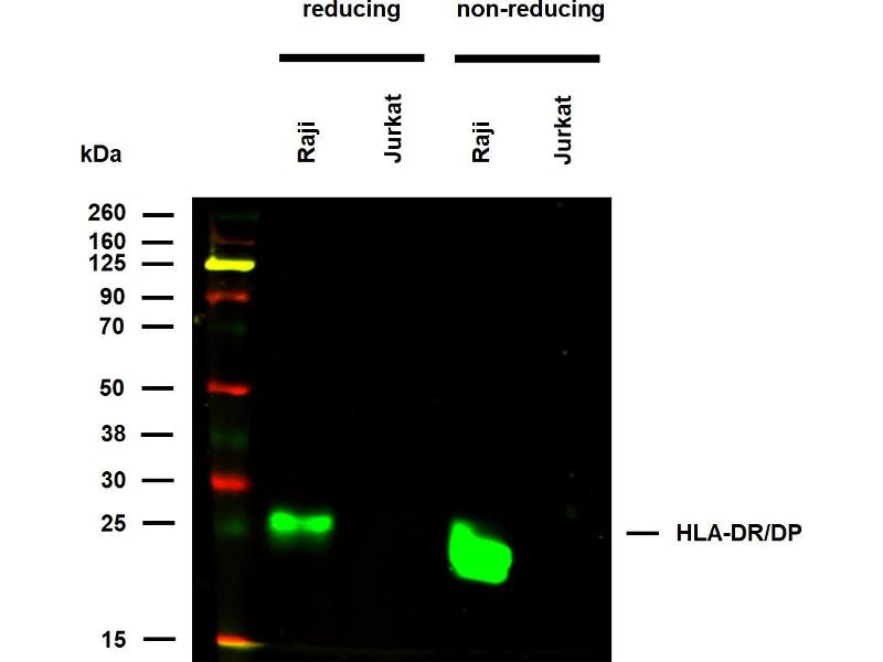 Der Maus Monoklonal anti-HLA-DP/DR Antikörper (Klon MEM-136) (ABIN94344) detektiert spezifisch HLA-DP/DR in FACS, IP, WB und IHC (p).