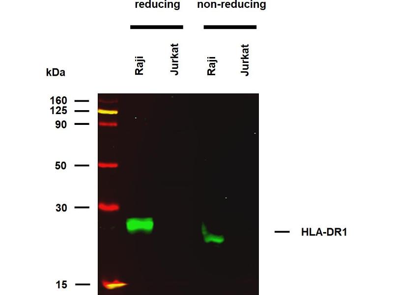 The antibody MEM-267 specifically binds extracellularly to the empty but not peptide-loaded form of HLA-DR1. DR is the isotypes of human MHC Class II molecules expressed on antigen-presenting cells (APC, dendritic cells, B lymphocytes, monocytes, macrophages).