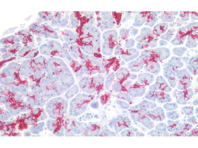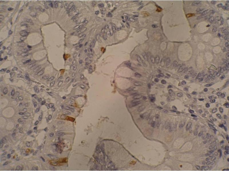 Immunohistochemistry (paraffin sections): Recommended dilution: 10 μg/mL, positive control: colorectal adenocarcinoma, heat mediated antigen retrieval (sodium citrate), mAb incubation 1 hour / RT, detection DAB.