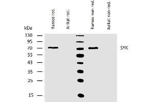 The antibody SYK-01 reacts with protein tyrosine kinase p72Syk (Syk, an intracellular antigen), which is required for the transduction of signals through the B cell antigen receptor (BCR) and the high affinity IgE receptor (FcepsilonRI).