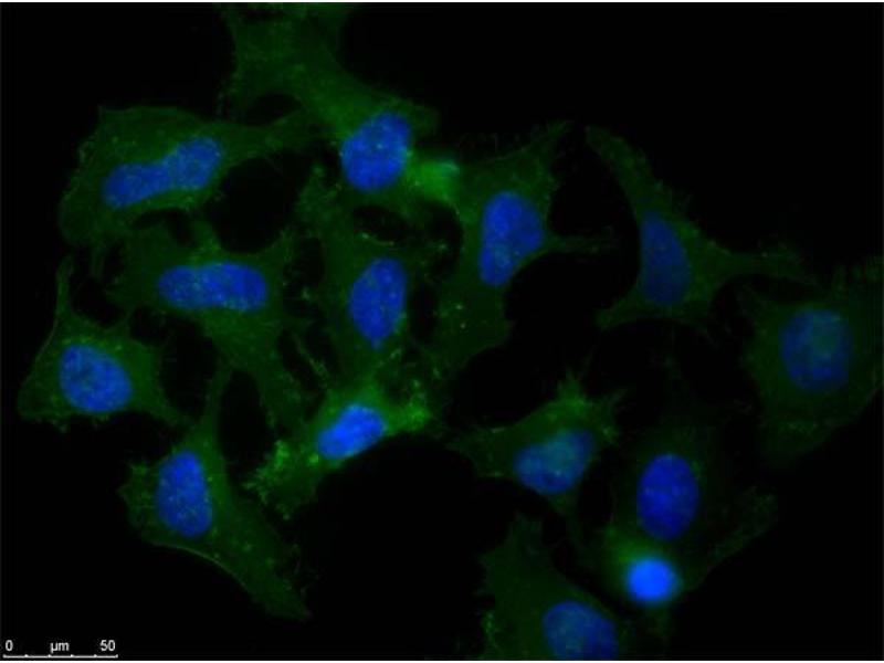 - Acquire images with a fluorescence microscope and appropriate filter settings for AF488, e.g. Leica DM 6000B fluorescence microscope equipped with a digital camera at 40x magnification.