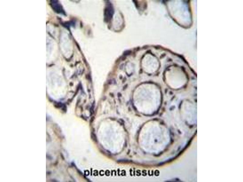 Calpains are ubiquitous, well-conserved family of calcium-dependent, cysteine proteases. The calpain proteins are heterodimers consisting of an invariant small subunit and variable large subunits. The large subunit possesses a cysteine protease domain, and both subunits possess calcium-binding domains. Calpains have been implicated in neurodegenerative processes, as their activation can be triggered by calcium influx and oxidative stress. The protein encoded by this gene is highly expressed in the placenta. Its C-terminal region lacks any homology to the calmodulin-like domain of other calpains. The protein lacks critical active site residues and thus is suggested to be proteolytically inactive. The protein may play a role in tumor formation by inhibiting apoptosis and promoting angiogenesis.Synonyms: CALPM, CANPX, CAPN6, Calpain-like protease X-linked, Calpamodulin