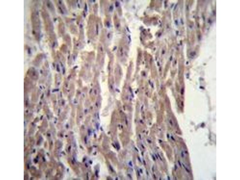 MYBPC3 encodes the cardiac isoform of myosin-binding protein C. Myosin-binding protein C is a myosin-associated protein found in the cross-bridge-bearing zone (C region) of A bands in striated muscle. MYBPC3, the cardiac isoform, is expressed exclussively in heart muscle. Regulatory phosphorylation of the cardiac isoform in vivo by cAMP-dependent protein kinase (PKA) upon adrenergic stimulation may be linked to modulation of cardiac contraction. Mutations in MYBPC3 are one cause of familial hypertrophic cardiomyopathy.Synonyms: C-protein cardiac muscle isoform, cardiac-type Myosin-binding protein C