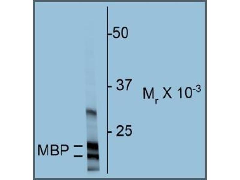 - Specific for the ~18k & 22k myelin basic protein in Western blots of Rat brain homogenate.