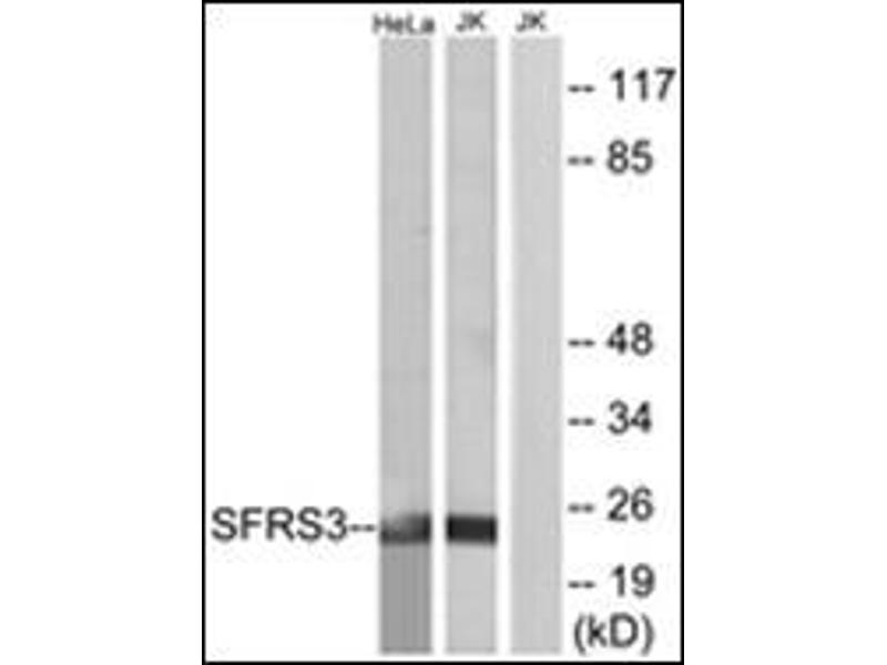 - This antibody detects endogenous levels of total SFRS3 protein.