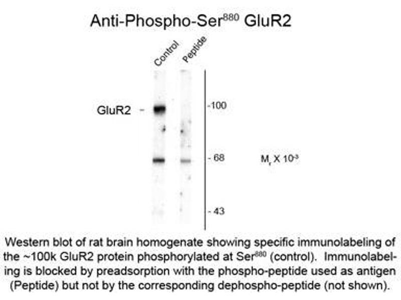 - Specific for the ~100k GluR2 protein phosphorylated at Ser880.