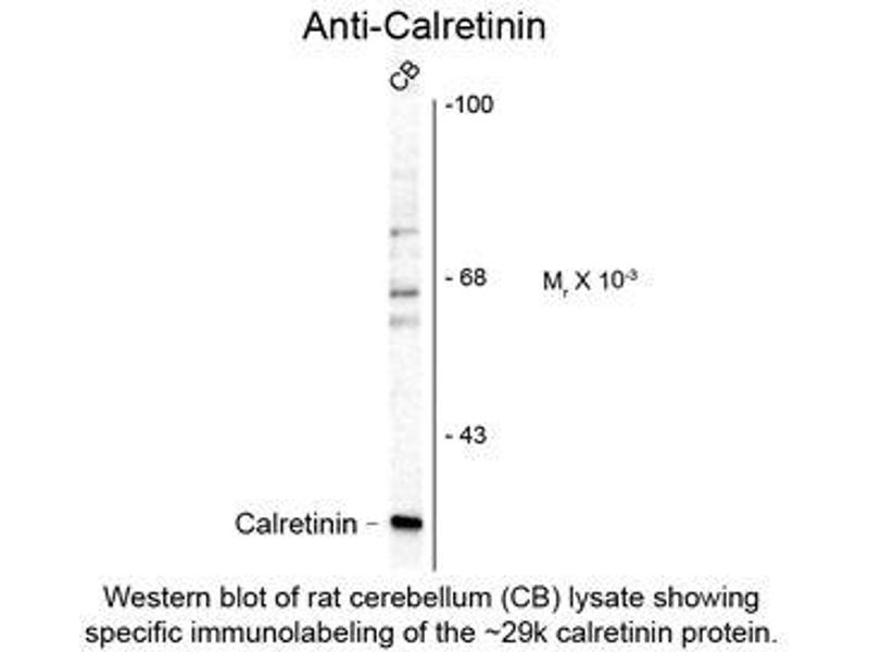 - Specific for the ~29 kDa calretinin protein in Western blots of rat brain lysate.