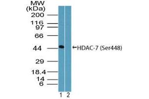 Amino acids 443-452 (CLSRAQbSPAA) of human HDAC-7protein were used as the immunogen ('b' represents a phosphorylated serine at position 448).