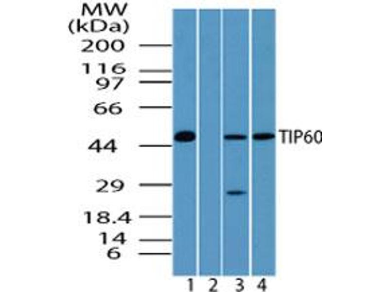 Synonyms: KAT5, 60 kDa Tat-interactive protein, CPLA(2)-interacting protein, CPLA2 interacting protein, HIV-1 Tat interactive protein, ESA1, HTATIP1, Histone acetyltransferase KAT5, K-acetyltransferase 5, Lysine acetyltransferase 5, HTATIP, K(lysine) acetyltransferase 5, PLIP, TIP60, Tat interacting protein, 60  kDa, TIP, ZC2HC5