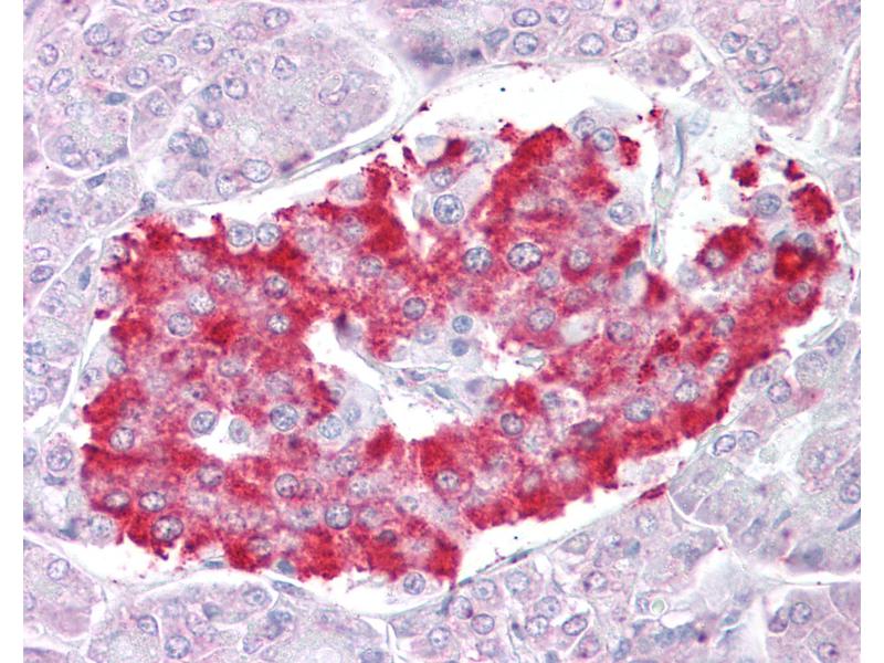 Usage: Peptide ELISA: antibody detection limit dilution 1:32000. Western blot: Preliminary experiments gave an approx. 26 kDa band in Human Skeletal Muscle lysates after 1 μg/mL antibody staining. Please note that currently we cannot find an explanation in the literature for the band we observe given the calculated size of 52.9 kDa according to NP_116274.3. The 26 kDa band was successfully blocked by incubation with the immunizing peptide. -