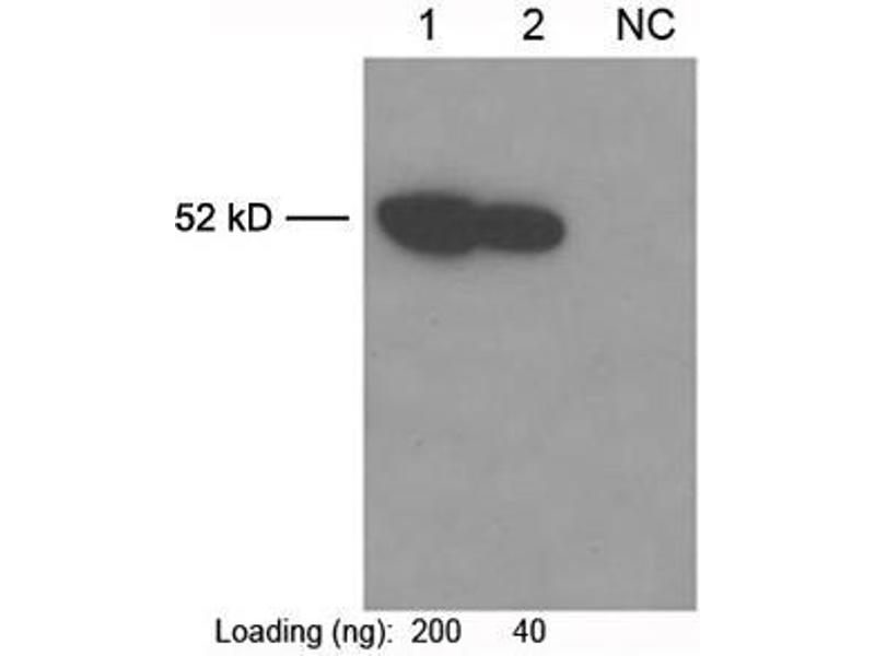Working concentrations for specific applications should be determined by the investigator. The appropriate concentrations may be affected by secondary antibody affinity, antigen concentration, the sensitivity of the method of detection, temperature, the length of the incubations, and other factors. The suitability of this antibody for applications other than those listed below has not been determined. The following concentration ranges are recommended starting points for this product. ELISA: 0.05 µg/mL-0.2 µg/mL Western blot: 0.1 µg/mL-1 µg/mL Western blot using ONE-HOUR Western Kit: For quick results, ONE-HOUR Western Kit L00205C is recommended. 0.9 µg of this antibody is mixed with diluted WB solution (dilute 1.5 mL WB with 1.5 mL of PBST).Immunoprecipitation (IP): 1 µg/mL Immunofluorescent staining: 1 µg/mL Other applications: user-optimized