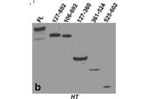Welche Validierungsdaten gibt es für diesen His-tag-Antikörper? Der His-tag-Antikörper wurde bisher in 4 Publikationen verwendet, die bei Pubmed eingesehen werden können. Vier Bilder sind für die Validierung des Antikörpers im Western Blotting und ELISA verfügbar.