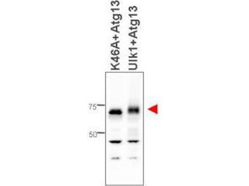 - Background: ATG13 is a target of the TOR kinase signaling pathway that regulates autophagy through the control of the phosphorylation status of ATG13 and ULK1 through their stable complex, and the regulation of ATG13-ULK1-RB1CC1. ATG13 also forms a stable complex with FIP200. Ulk1 phosphorylates ATG13 on S318 and promotes its release to damaged mitochondria. Autophagy is a normal process in eukaryotes required for turnover of cellular components during starvation and stress. It plays an essential role in cellular differentiation, cell death and aging. Defects in this evolutionarily conserved process may contribute to certain human diseases such as cancer, neurodegenerative diseases, muscular disorders and pathogen infections. ATG13 is one of several ATG genes required for autophagosome formation in mammalian cells. mTOR interacts with this complex in a nutrient dependent manner and phosphorylates Atg13 and ULK1.