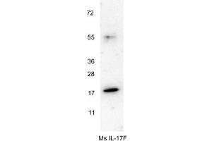 Immunogen: This purified antibody was prepared from whole rabbit serum produced by repeated immunizations with full length recombinant mouse IL17-F protein.