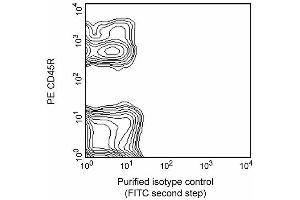 The HIS50 antibody reacts with CD24 (Heat-Stable Antigen, HSA or HsAg), a variably glycosylated GPI-anchored membrane protein. In the rat, Cd24 mRNA is found in a variety of epithelia, neural tissue, lymph node germinal centers, and thymus. mAb HIS50 detects CD24 on most B-lineage cells in the bone marrow, on most sIgM[high] B lymphocytes in the blood and spleen, and on marginal-zone B cells in the spleen and lymph node. Variable levels of CD24 are detected on sIgM[dull] and follicular B lymphocytes. mAb HIS50 does not detect CD24 on rat thymocytes nor peripheral T lymphocytes, NK cells, or granulocytes. The HIS50 antibody cross-reacts with intracellular antigen(s) in human lymphocytes.