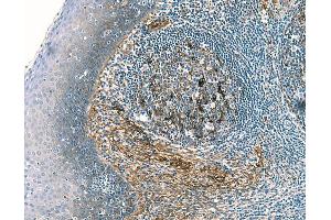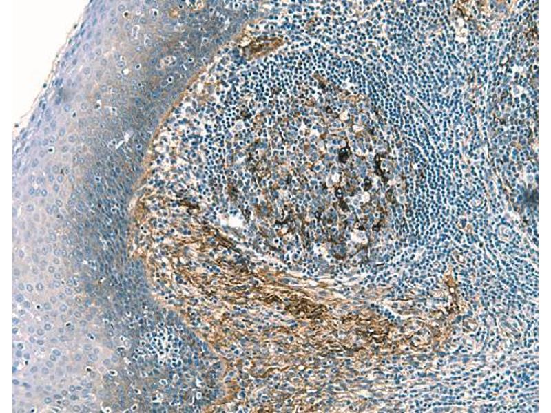 Immunohistochemistry: The E5 antibody, specific for human clusterin, is tested for immunohistochemical staining of acetone-fixed frozen sections and zinc-fixed and formalin-fixed, paraffin-embedded sections. Tissue tested was human tonsil. The antibody stains dendritic cells in the follicle and basement membrane of epithelial cells. The isotype control recommended for use with this antibody is purified mouse IgG1. For optimal indirect immunohistochemical staining, the E5 antibody should be titrated (1:10 to 1:50 dilution) and visualized via a three-step staining procedure in combination with polyclonal, biotin conjugated anti-mouse Igs (multiple adsorbed) as the secondary antibody and Streptavidin-HRP together with the DAB Detection System. More conveniently, the Anti-Mouse Ig HRP Detection Kit, which contains the biotinylated secondary antibody, antibody diluent, Streptavidin-HRP and DAB substrate, can be used for staining.