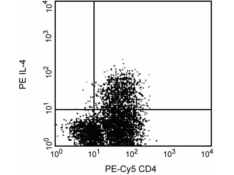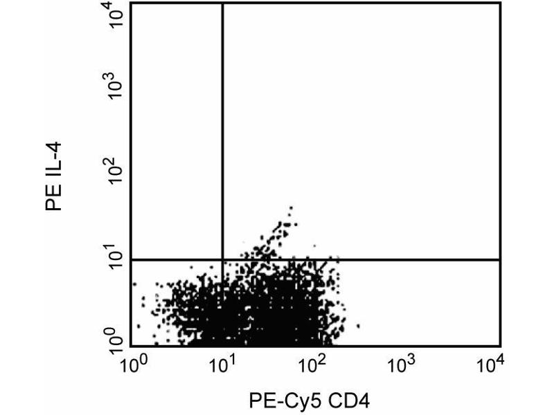 1. Blocking Control for Intracellular Staining: The unlabeled MP4-25D2 antibody can be used as a blocking control to demonstrate specificity of IL-4 staining by conjugated MP4-25D2 antibody. To perform this control, the fixed/permeabilized cells (~ 1 million) can be incubated with 1-10 µg of unlabeled MP4-25D2 antibody (ABIN967463) for 20 minutes at 4°C, prior to staining with conjugated MP4-25D2 antibody. The intracellular cytokine staining technique and use of blocking controls are described in detail by C. Prussin and D. Metcalfe.