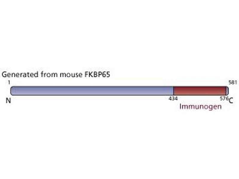 FK506, one of multiple potent compounds that block T cell proliferation, is used for immunosuppressive therapy. Several FK506-binding proteins (FKBPs) have been identified in the search for intracellular targets for FK506. These include FKBP12, FKBP13, FKBP51, and FKBP52. The immunosuppressive effects of FK506 and FKBPs result from the inhibition of the calcineurin phosphatase, a well known component of the signaling cascade leading to IL-2 production. FKBP65 is another member of the FKBP protein family and contains the characteristic peptidylprolyl cis-trans-isomerase activity. FKBP65 has been reported to be expressed in the lung, testis, brain, heart, and spleen. Although it has a predicted molecular weight of 65 kDa, FKBP65 has been observed to migrate ranging from 68-72 kDa in SDS electrophoresis gels, perhaps, due to glycosylation and/or phosphorylation.