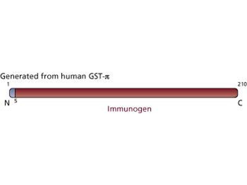 Glutathione-S-Transferases (GSTs) are a family of dimeric proteins that catalyze the S-conjugation of glutathione with many compounds for detoxification. The GSTs are categorized into four classes based on their biochemical and structural properties: alpha, µ, pi, and theta. GST-pi is of particular interest because it is over-expressed in many tumors, but is either absent or expressed at low levels in the corresponding normal tissues. This high expression of GST-pi is associated with malignant transformation and correlates with a decrease in GST activity. Three different GST-pi proteins have been isolated and designated as hGSTP1A, hGSTP1B, and hGSTP1C. These isoforms are nearly identical, varying by only one to two amino acids. This antibody is routinely tested by western blot analysis.