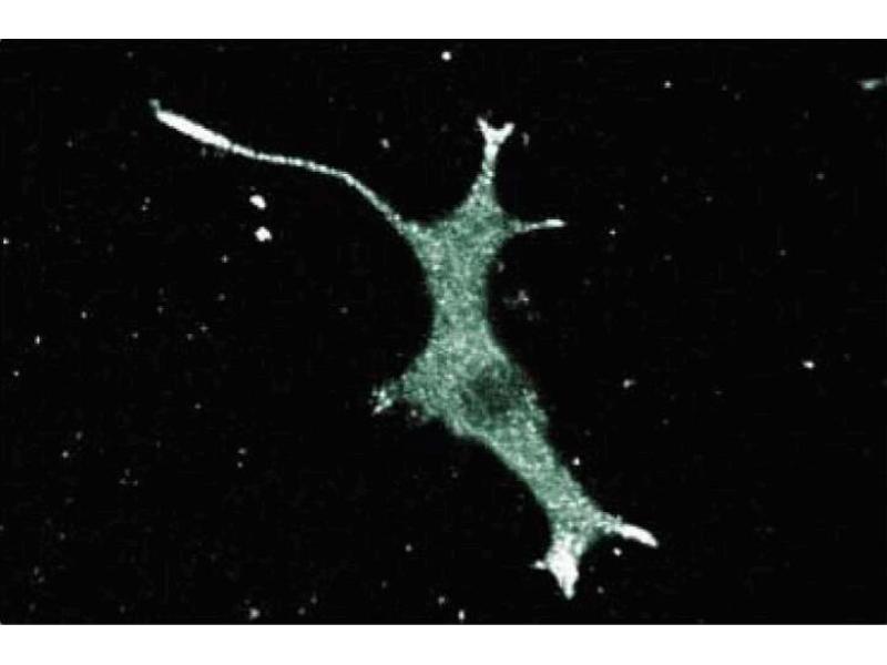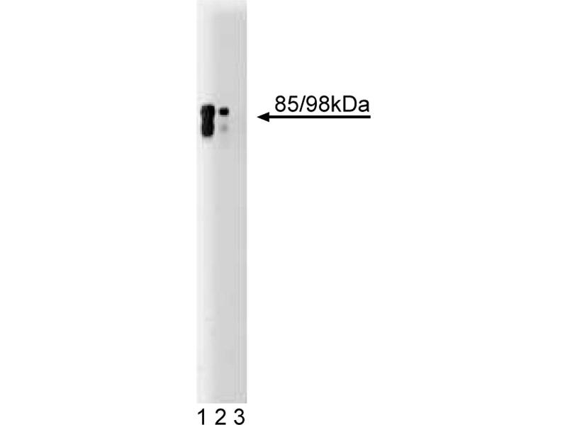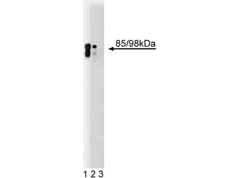 Huntington's disease (HD) is an autosomal dominant neurodegenerative disorder caused by an expanding polyglutamine repeat in the IT15 or huntingtin gene. The mechanism(s) of pathogenesis are not known and the wide expression of Huntingtin protein does not explain the selective neuropathology of HD. HAP-1 (Huntingtin-associated protein 1), identified by yeast two hybrid screening, interacts with the huntingtin protein. There are two isoforms of rat HAP1 (HAP1-A and HAP1-B) which differ in the length of their C-terminal regions. Both proteins are highly hydrophilic and their binding to the Huntingtin protein is enhanced by the expanded polyglutamine repeat. Human HAP1 shares 62% amino acid identity with HAP1-A. HAP1 is specifically expressed in the CNS where it is restricted to limbic structures, such as amygdala, hypothalamus, bed nucleus of the stria terminalis, and the septal nucleus. The subcellular association of HAP1 with microtubules and many types of membraneous organelles implicates it in vesicular transport. Thus, the specific neural interaction of HAP1 with Huntingtin protein may lead to abnormalities in vesicular transport that cause the neuropathology of HD. This antibody is routinely tested by western blot analysis.