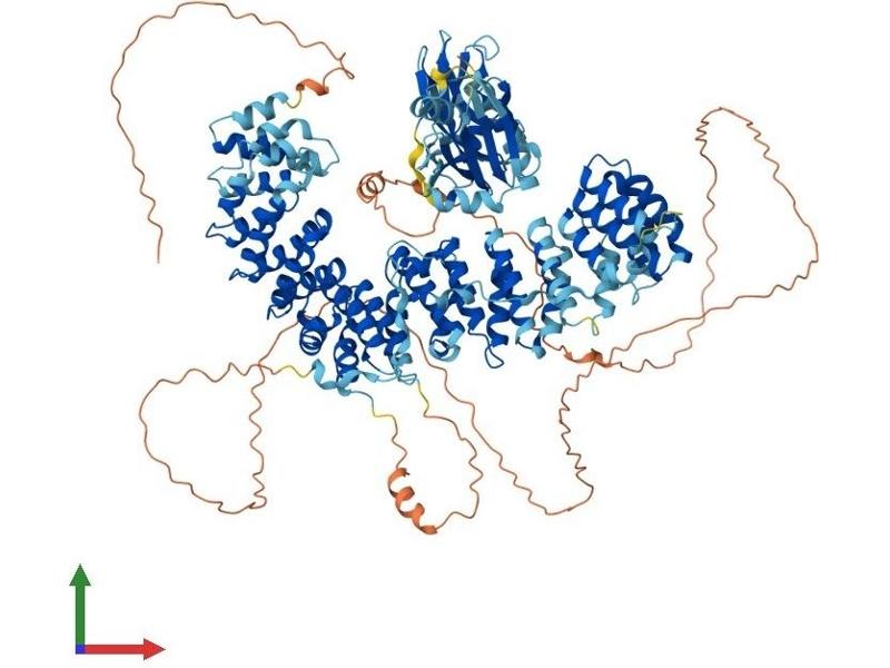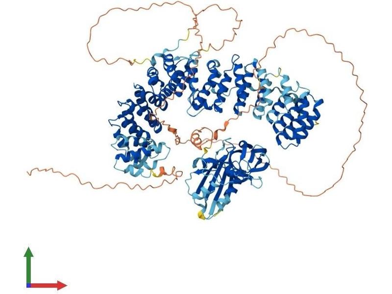 This gene encodes a protein that may play a role in organelle biogenesis associated with melanosomes, platelet dense granules, and lysosomes. The encoded protein is part of the heterotetrameric AP-3 protein complex which interacts with the scaffolding protein clathrin. Mutations in this gene are associated with Hermansky-Pudlak syndrome type 2. Two transcript variants encoding different isoforms have been found for this gene. [provided by RefSeq, Nov 2012].