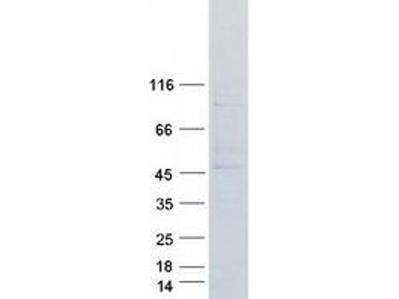 The purity of the protein is greater than 95 % as determined by SDS-PAGE and Coomassie blue staining.
