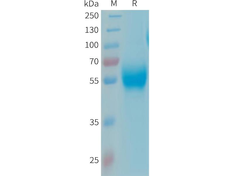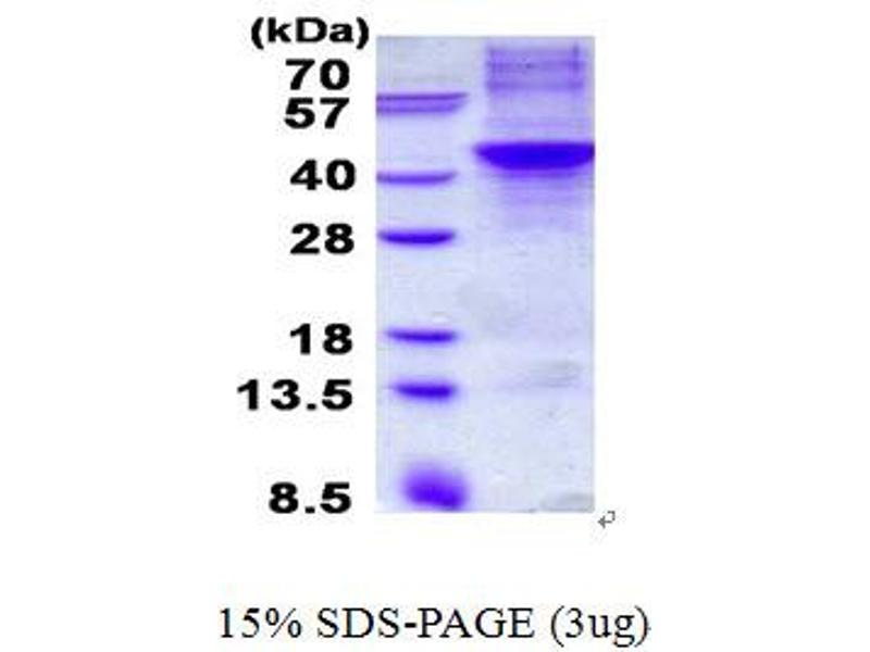 The purity of the protein is greater than 85 % as determined by SDS-PAGE and Coomassie blue staining.