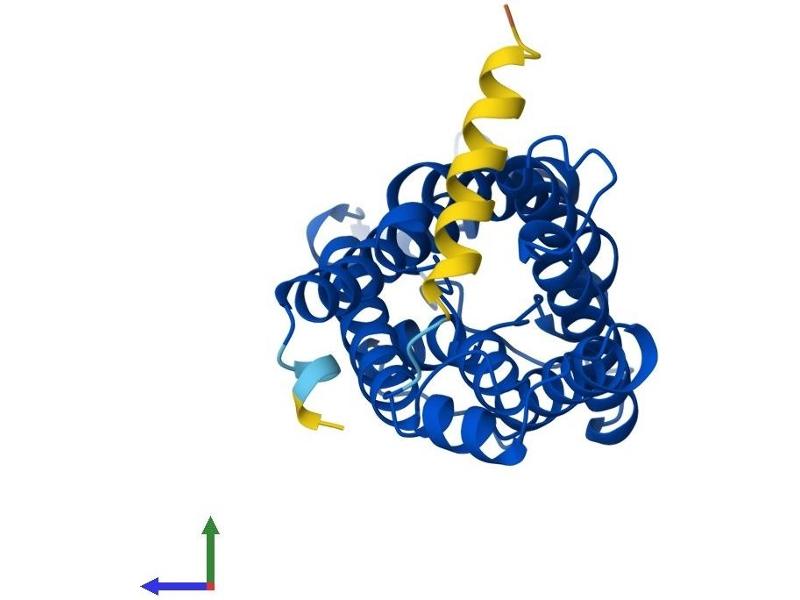 Aquaporin 5 (AQP5) is a water channel protein. Aquaporins are a family of small integral membrane proteins related to the major intrinsic protein (MIP or AQP0). Aquaporin 5 plays a role in the generation of saliva, tears and pulmonary secretions. AQP0, AQP2, AQP5, and AQP6 are closely related and all map to 12q13. [provided by RefSeq, Jul 2008].