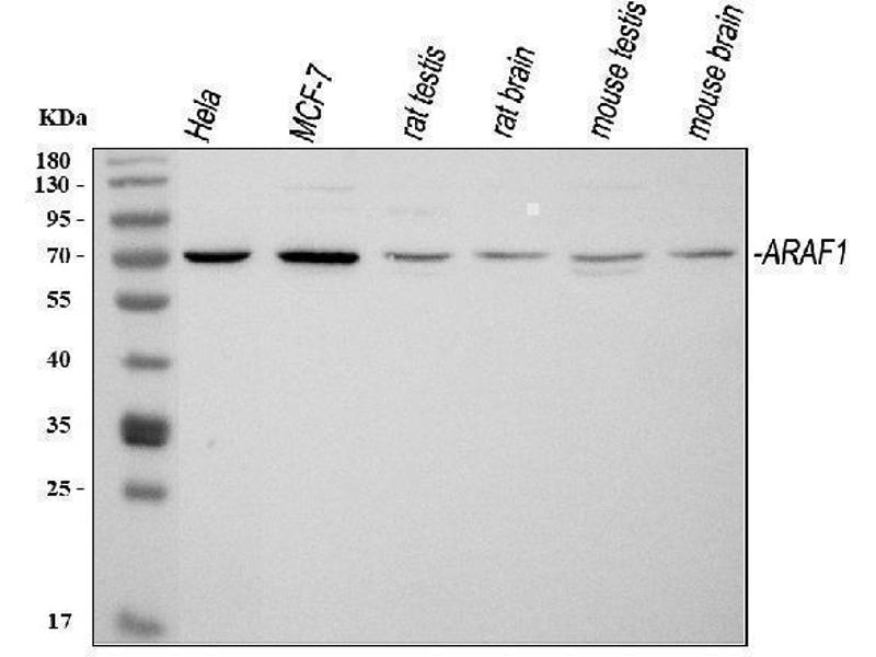 ARAF Reaktivität: Human, Maus, Ratte, Rind (Kuh), Schwein, Schaf, Pferd, Fledermaus WB Wirt: Kaninchen Polyclonal unconjugated