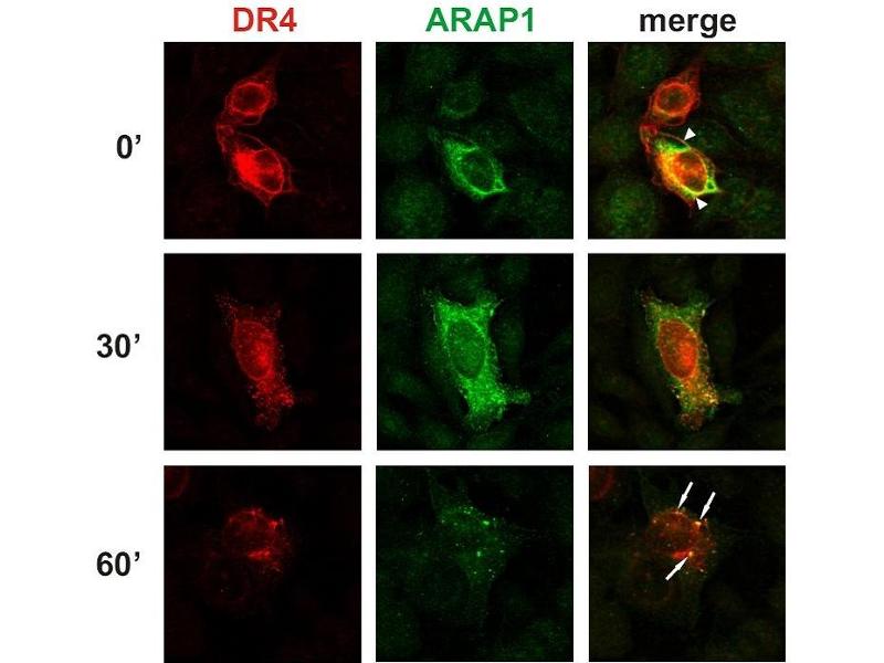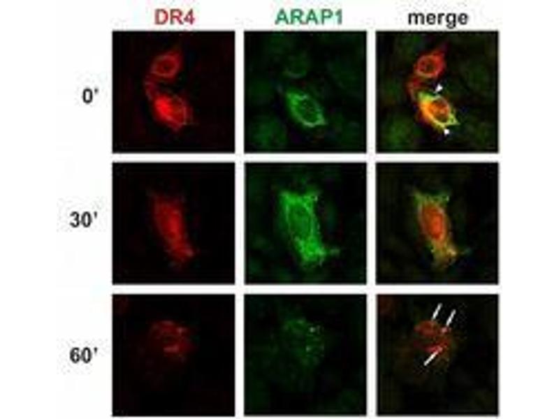 : "Arf and Rho GAP adapter protein ARAP1 participates in the mobilization of TRAIL-R1/DR4 to the plasma membrane." in: Apoptosis : an international journal on programmed cell death, Vol. 13, Issue 3, pp. 423-36, (2008) (PubMed).